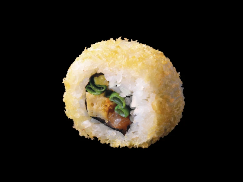 Жареный ролл с лососем, японским омлетом и зеленым луком